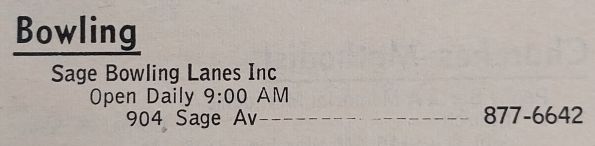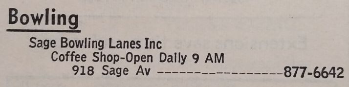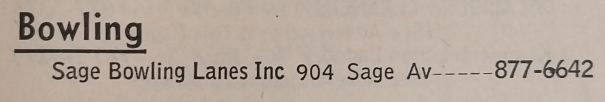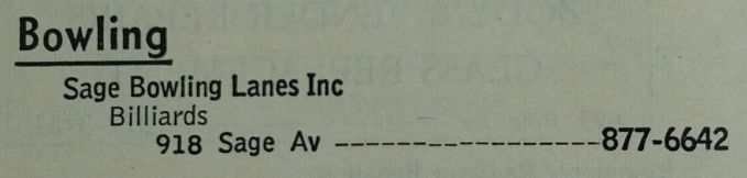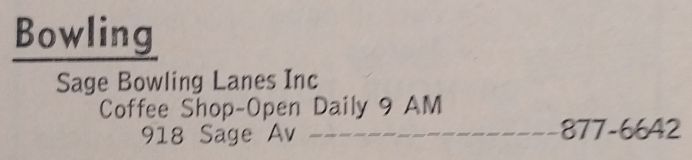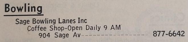 | Names: | Sage Bowling Lanes (1961 - present) |